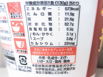 「具材たっぷり 贅沢出汁ちゃんぽん」のカロリーは1食130g当たり、573kkcalです。