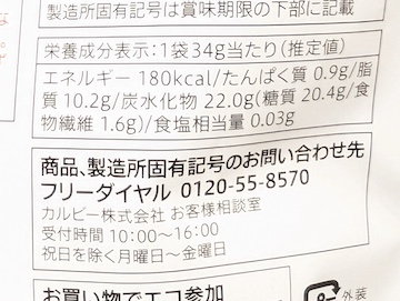 「カルビー 紅はるかチップス」のカロリーは、1袋34g当たり、180kcalです。