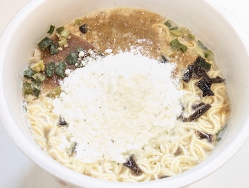なお、写真のとおり「後入れ粉末スープ」は、ほとんどがチーズパウダーでした。