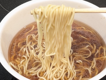麺とスープだけのカップ麺ですが、いずれも実際の店舗で味わえるようなこだわりを感じられます。ただし、場所にもよりますが、多くの来店者はコンビニで用意された熱湯を使って室外で調理するため、気温が低いと麺が戻らず、固くこわばった状態になってしまう懸念があります。