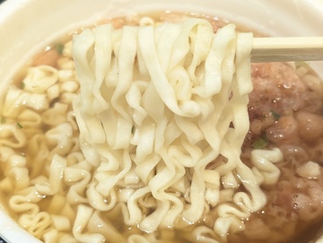 麺は「赤いきつね」と同じうどんで、矩形の麺ならではの独特な舌触りと、もちもちとした食感が魅力です。さらに、かつおと昆布の旨みのバランスが良く、煮干しでその密度を高めた和風だしの効いたつゆを、麺がしっかりと吸い込んでいる点には脱帽しました。